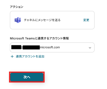 ステップ6:Microsoft Teamsのチャネルにメッセージを送る設定