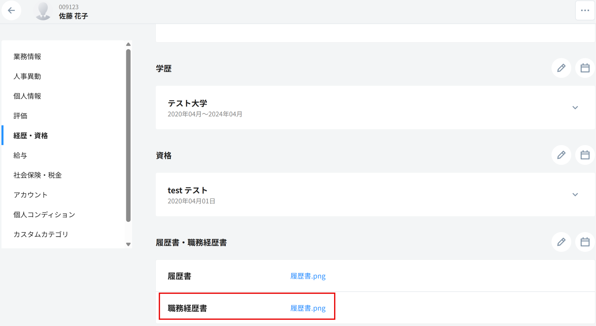 ステップ4:社員の履歴書・職務経歴書情報を取得