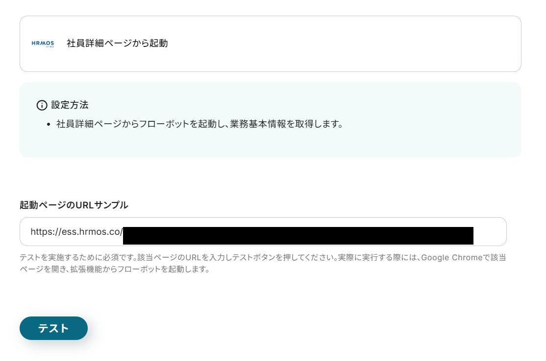 起動ページのURLサンプルは、HRMOSの社員詳細ページのリンクを貼り付けてください。