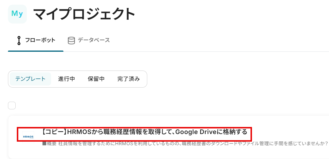 コピーしたテンプレートはマイプロジェクトに追加されます。
