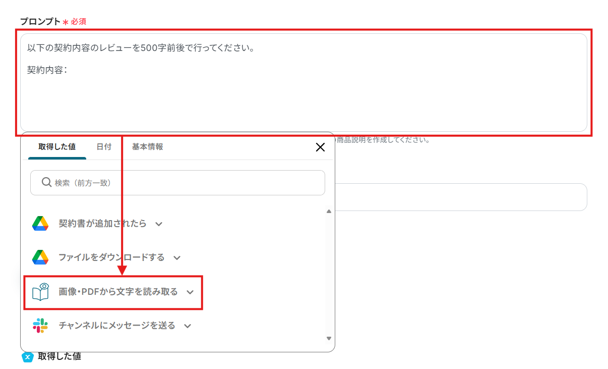 ※ YoomのOCR機能では、アクション記載の規定の文字数を超えるデータや、文字が小さすぎる場合に正しく読み取れないことがあります。