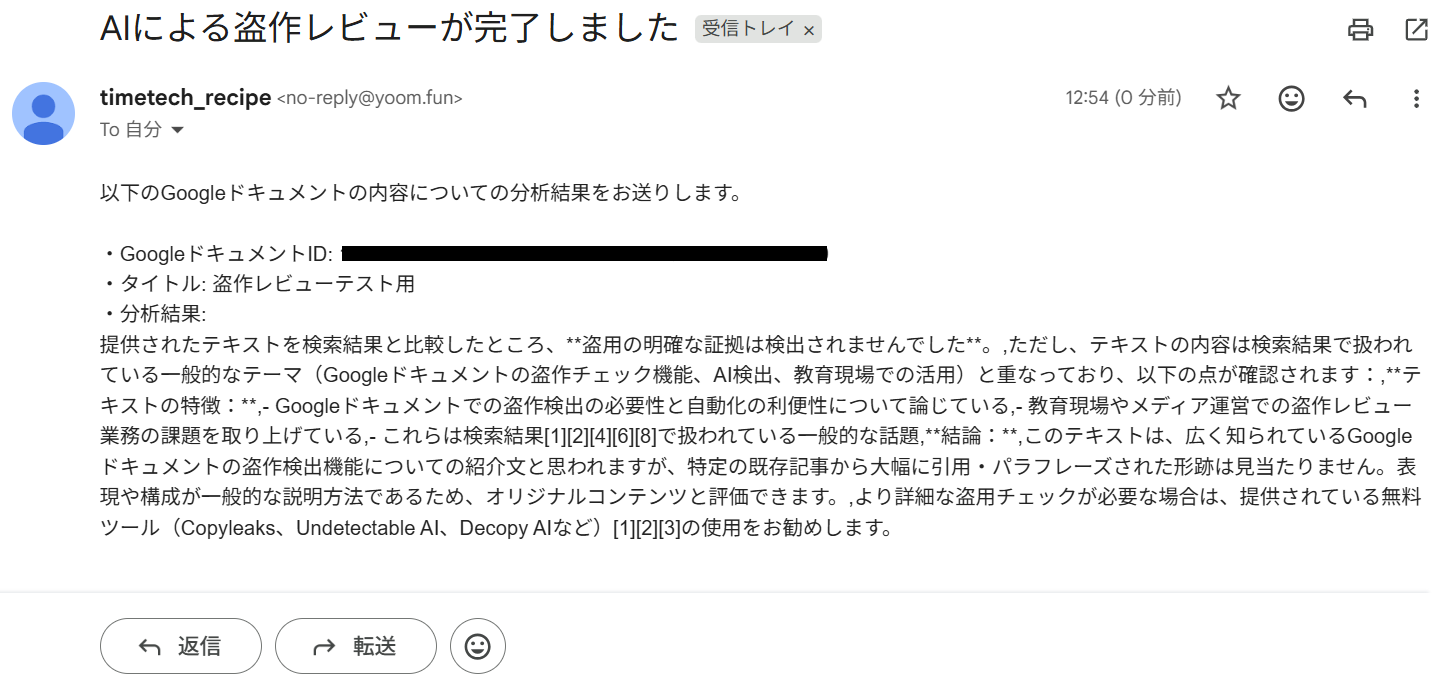 Yoomのアドレスから、Perplexityによるレビュー結果が送信されました!