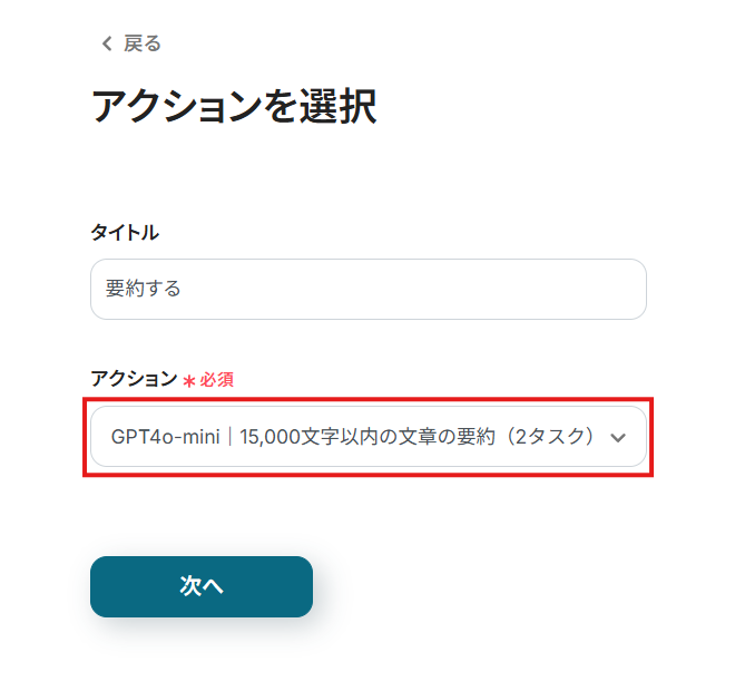 アクションの内容が分かりやすいタイトルにするとよいでしょう。