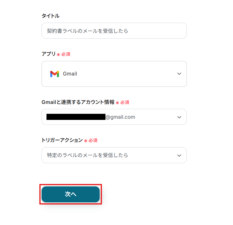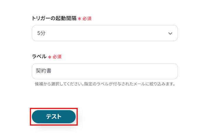 - 「ラベル」にトリガーとなるメールのラベルを設定。