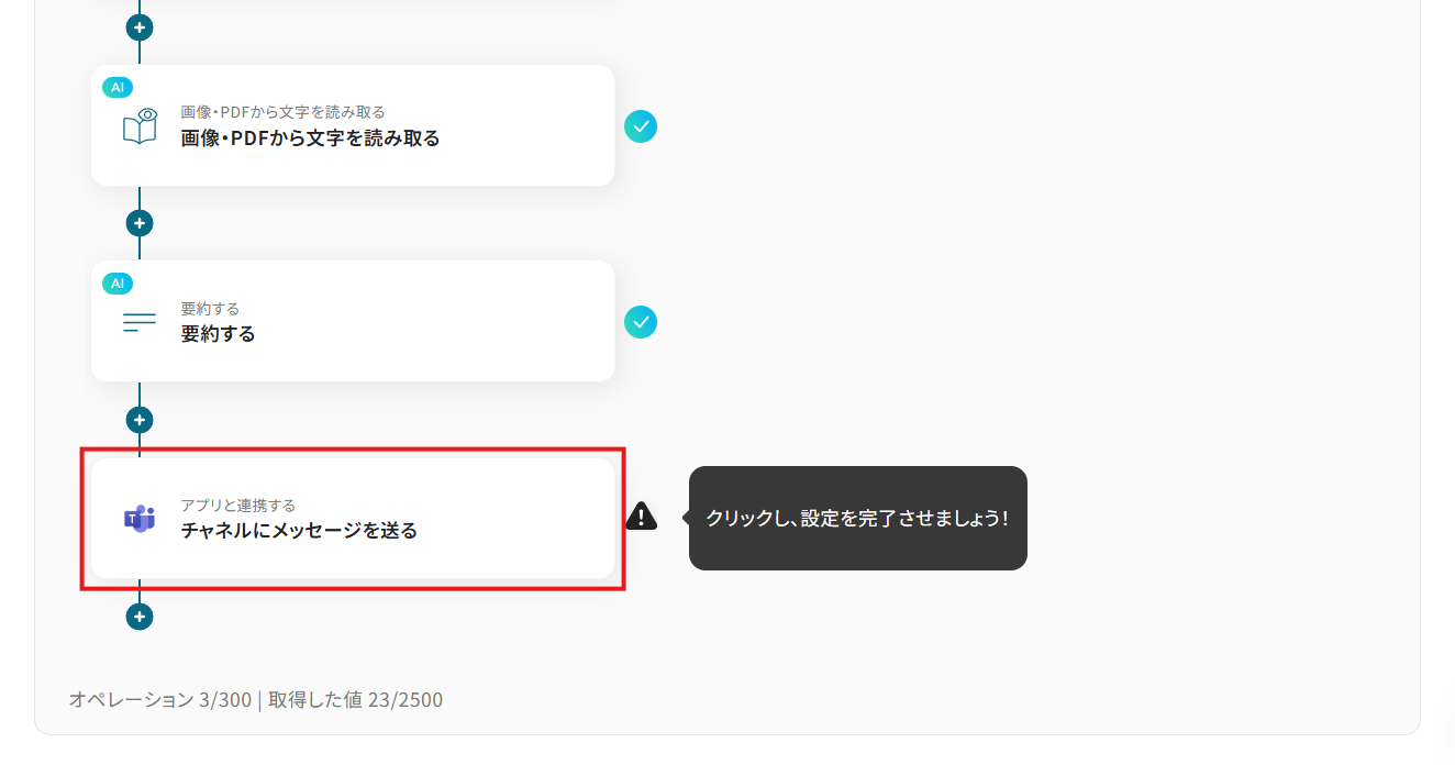 それでは代表的な例として、「Gmailで受信したメールに添付されているPDFファイルをOCRでテキスト化し、AIがその内容を要約、そしてMicrosoft Teamsの指定チャンネルに自動で保存する」フローを解説していきます!
