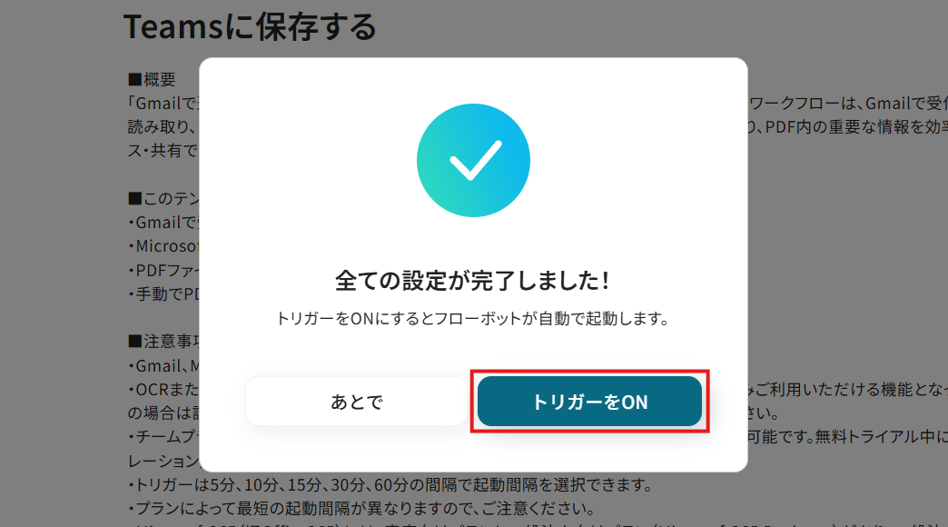 ステップ7:フロー稼働の準備(トリガーをONに設定)