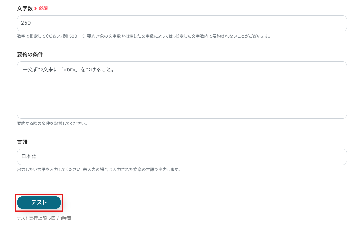 - トリガーとなるメールと各アクション(テキスト抽出・要約・投稿)の設定