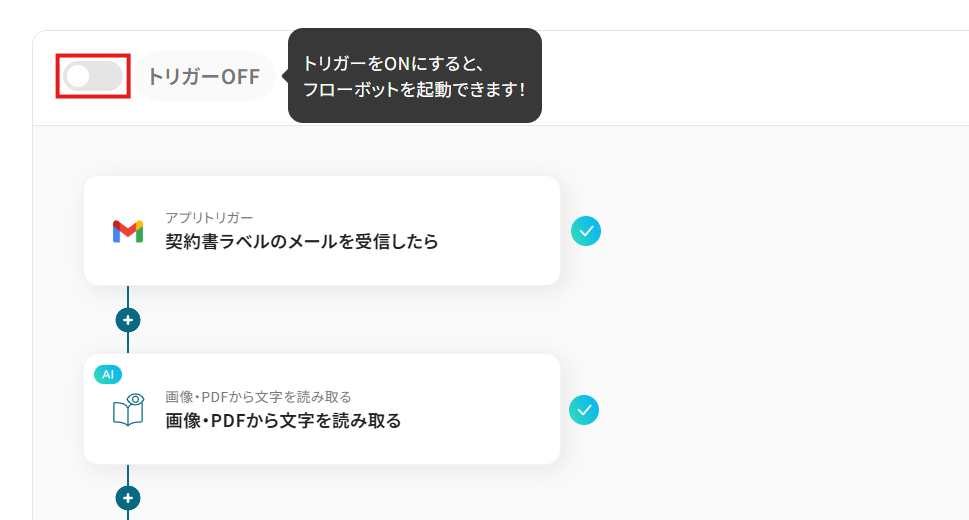 あとで稼働させる場合は、フロー画面のトリガースイッチをクリックすることで、トリガーをONにできます。