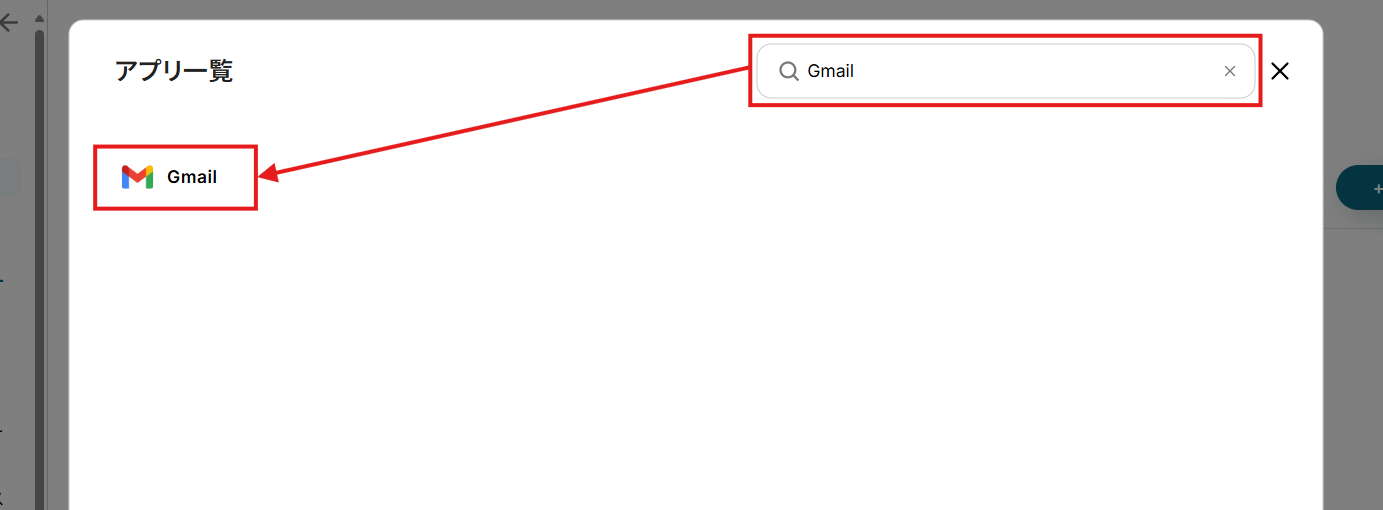 - 「アプリ一覧」が表示されたら、右上の検索バーでアプリ名(ここではGmail)を検索して選択。