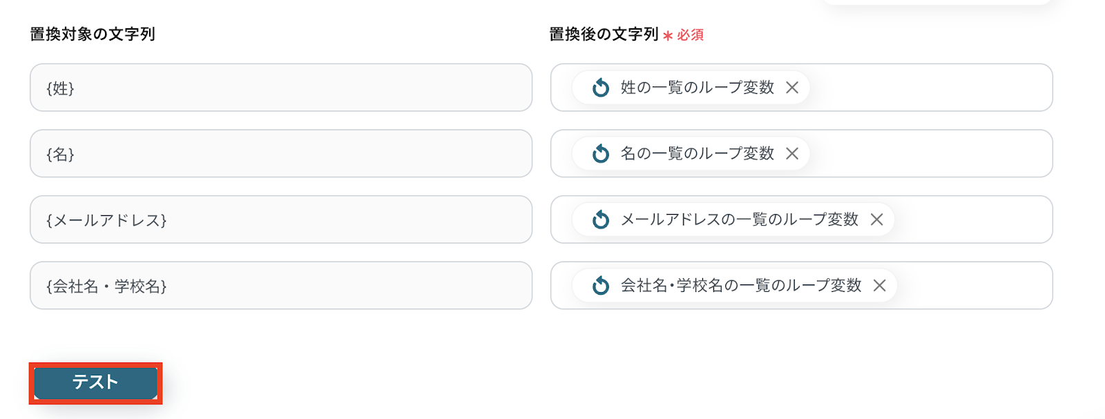 「置換対象の文字列」に合わせて「置換後の文字列」を入力します。