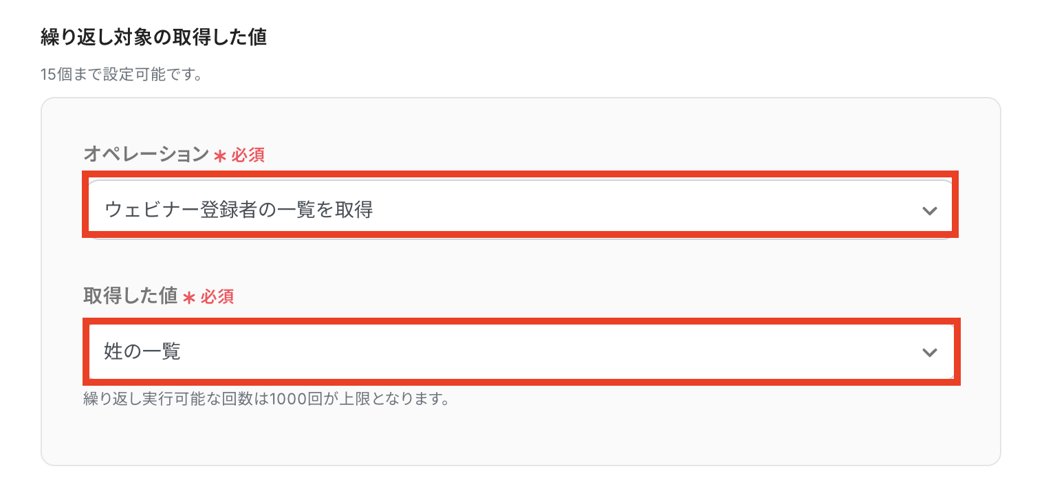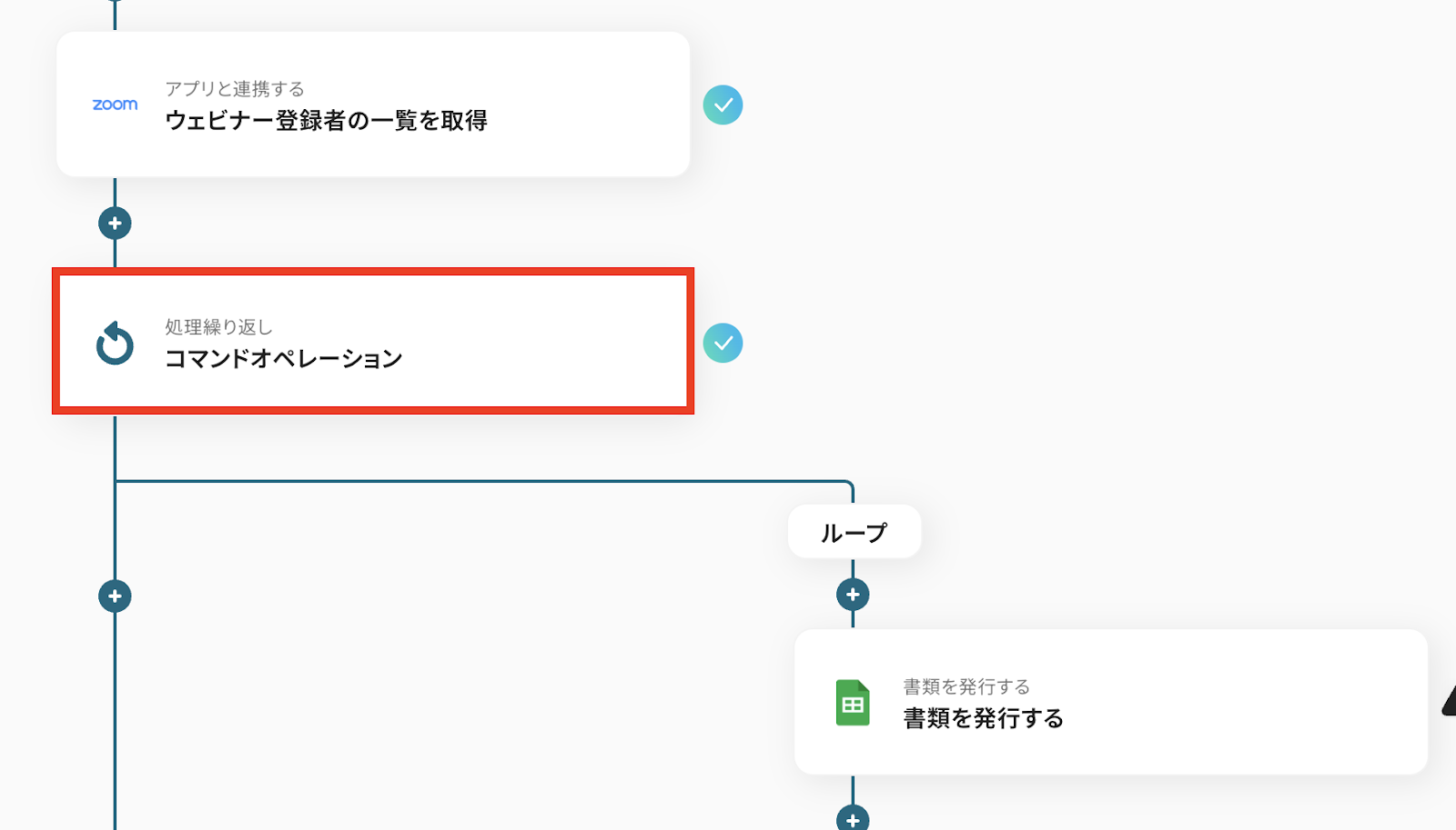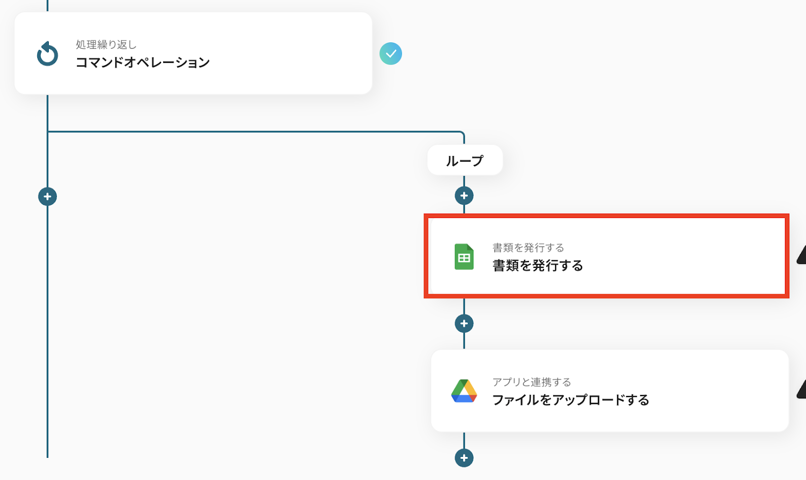 ・「同じ処理を繰り返す」オペレーション間の操作は、チームプラン・サクセスプランでのみご利用いただける機能となっております。フリープラン・ミニプランの場合は設定しているフローボットのオペレーションやデータコネクトはエラーとなりますので、ご注意ください。