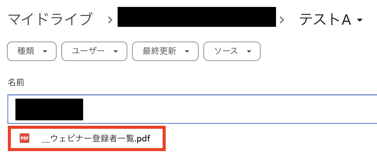 テストに成功すると、先ほど指定したフォルダにウェビナー参加者一覧のレポートが保存されます。