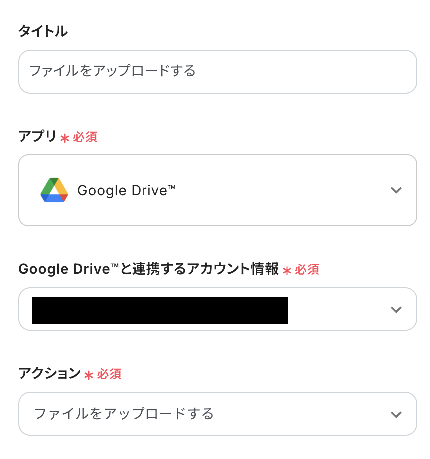 「Google Driveと連携するアカウント情報」:合っているか確認