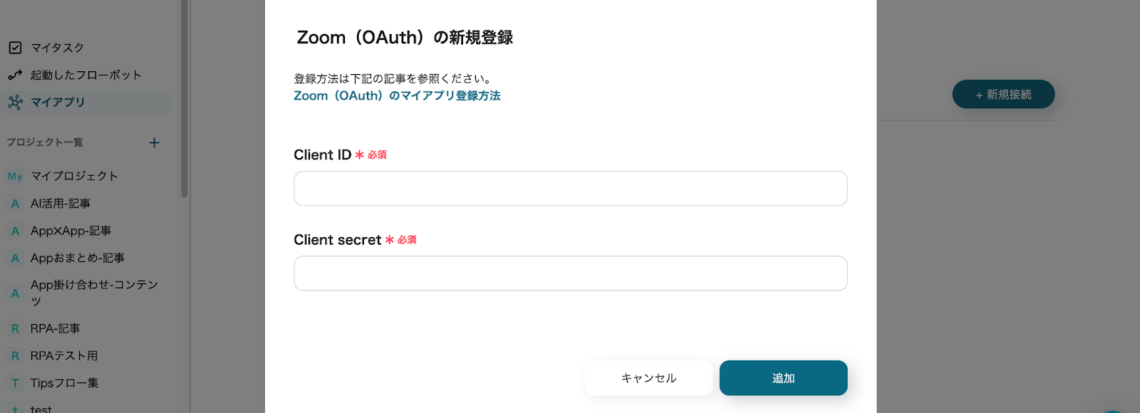 ステップ1:Zoom・Google Drive・Google スプレッドシートをマイアプリ連携