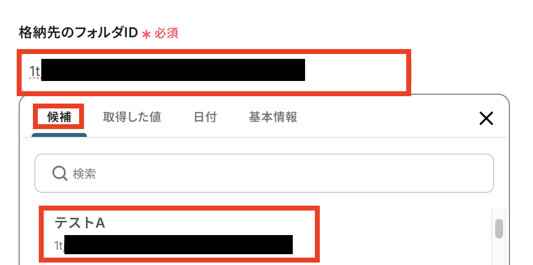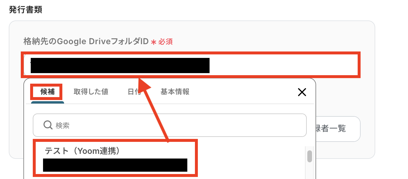 「格納先のGoogle DriveフォルダID」も候補から選べます!