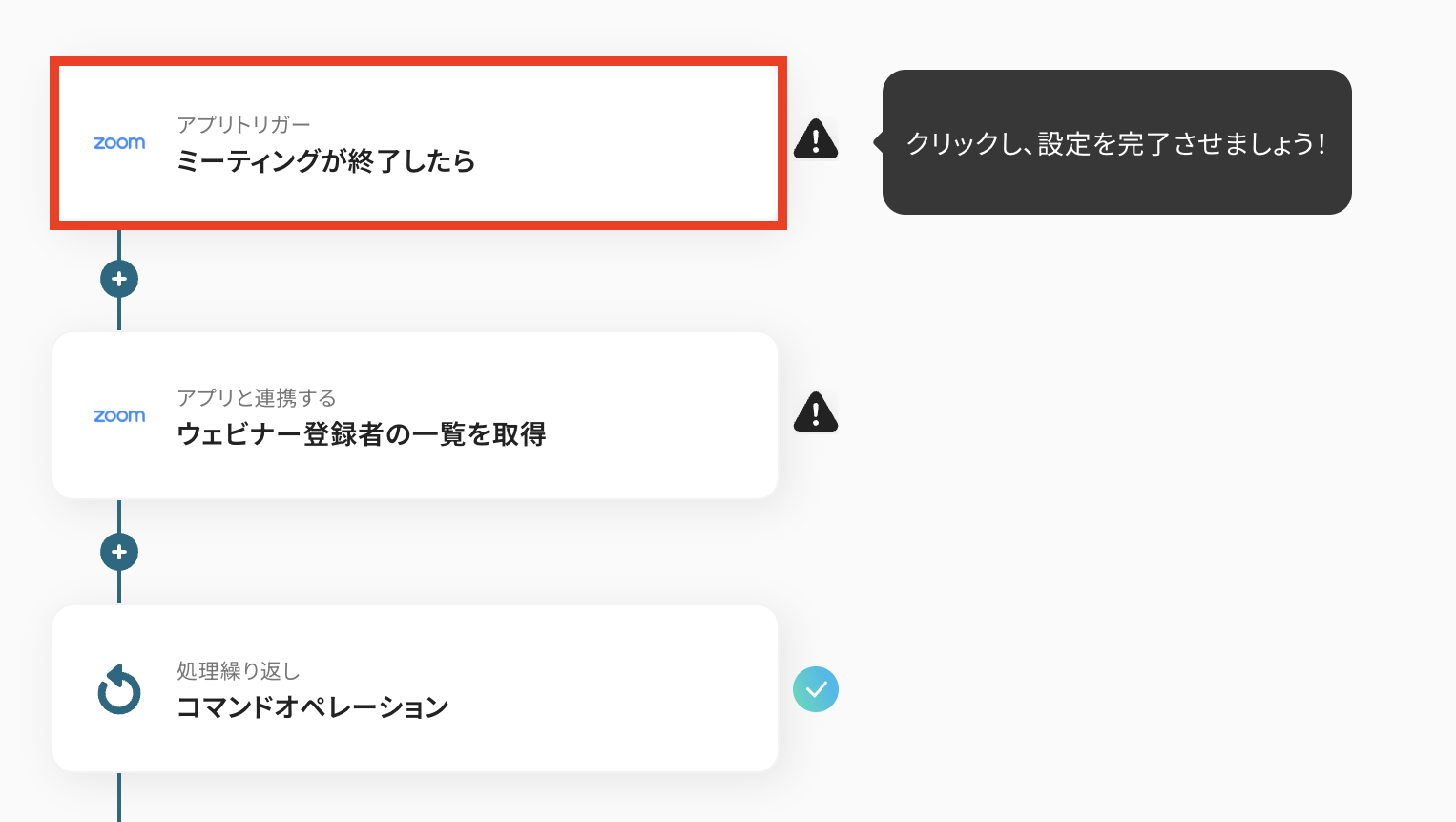 それではここから代表的な例として「Zoomウェビナーが終了した際に、参加者レポートを自動でGoogle Driveに保存する」フローを解説していきます!