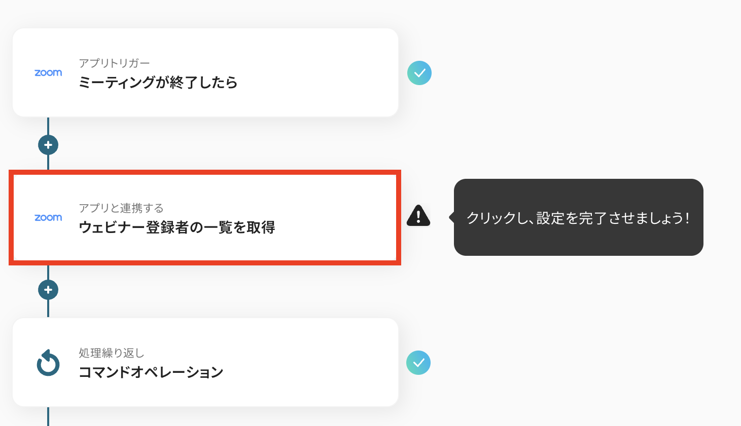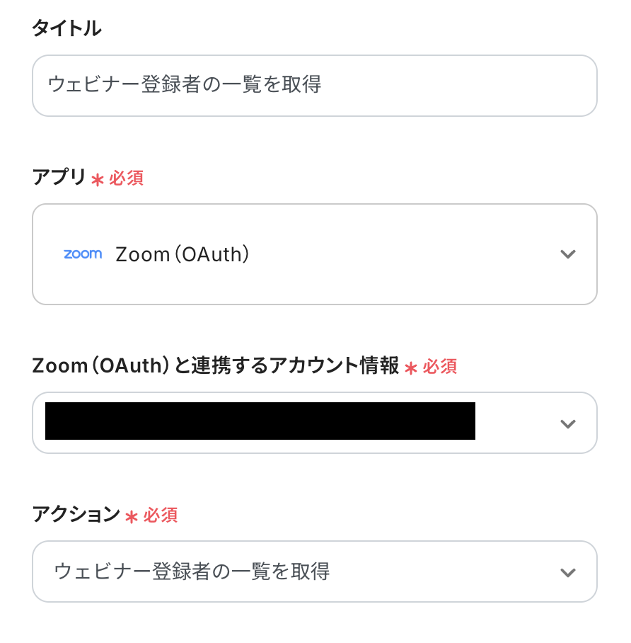 ・Zoomのプランによって利用できるアクションとそうでないアクションがあるため、ご注意ください。