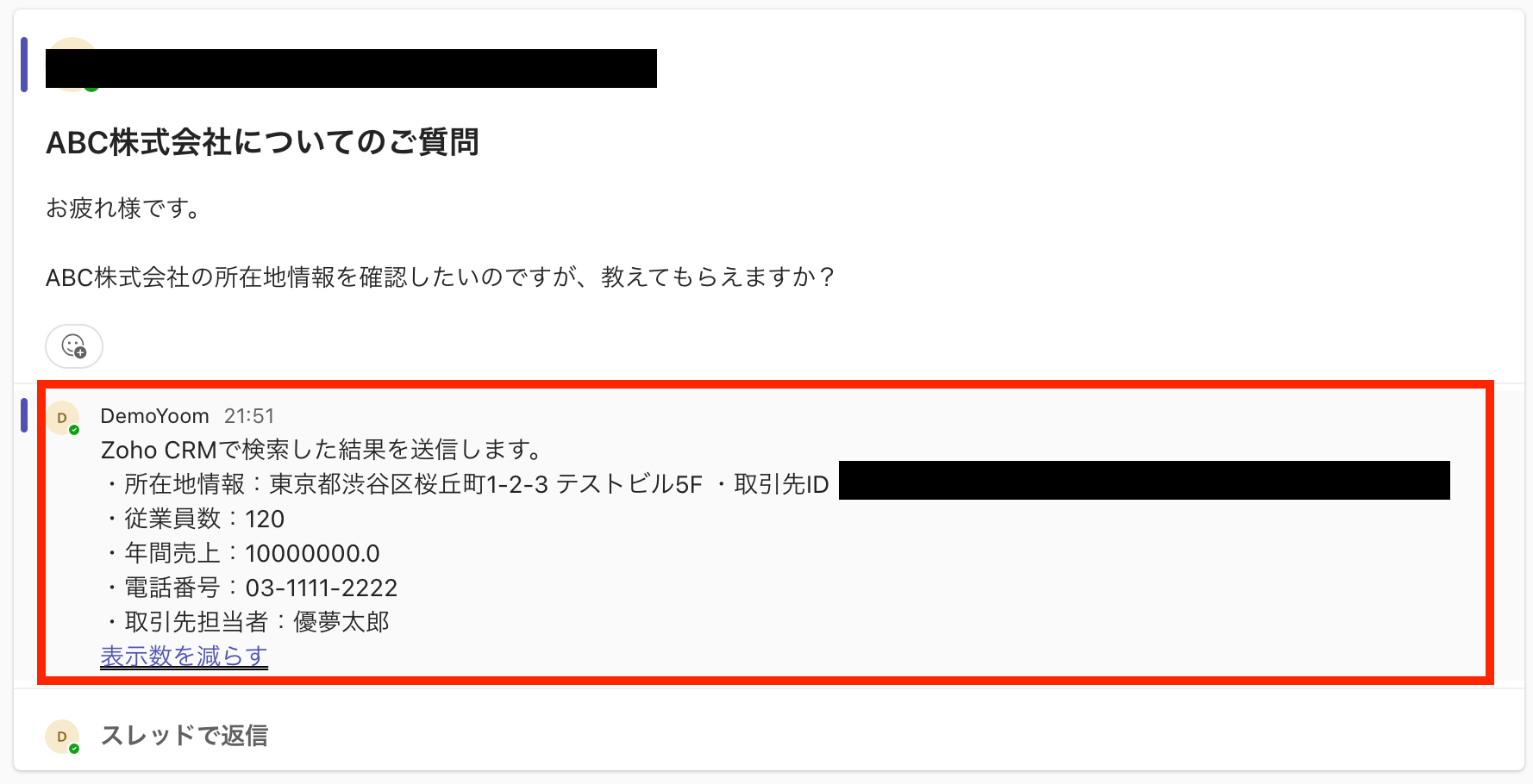 Microsoft Teamsへの投稿をもとにZoho CRMの取引先を検索して返信する