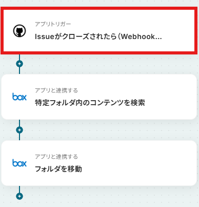 それではここから代表的な例として、GitHubでIssueがクローズされた際に、Boxで関連するフォルダを自動で検索し、アーカイブフォルダに移動させるフローを解説していきます!