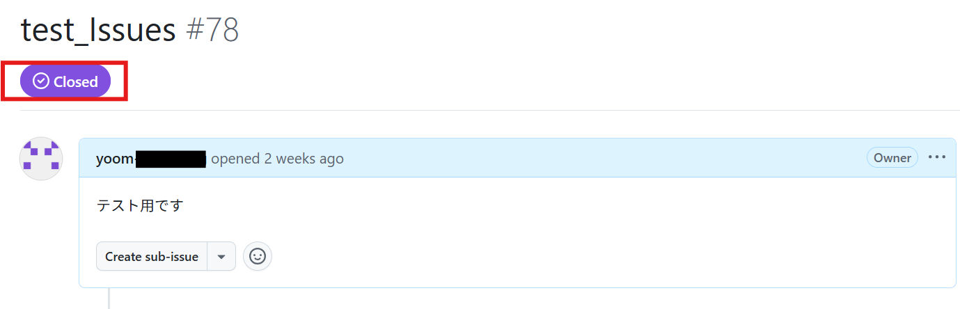 次にトリガーとなる動作を行います。今回は「Issueをクローズする」なので、GitHub上のIssueをクローズします。