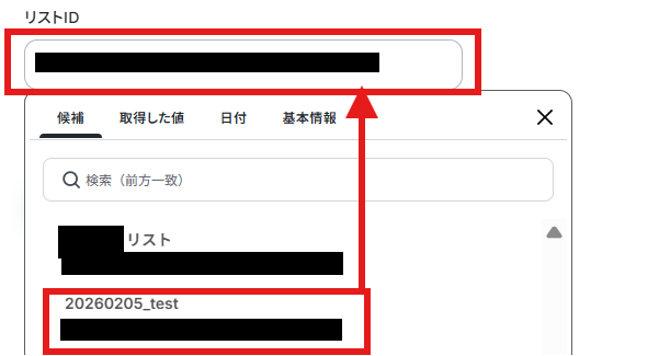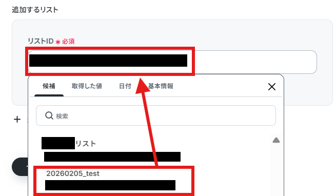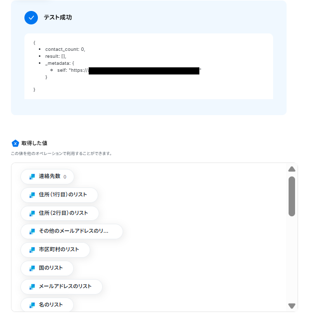 取得した値とは、トリガーやオペレーション設定時に、「テスト」を実行して取得した値のことを指します。