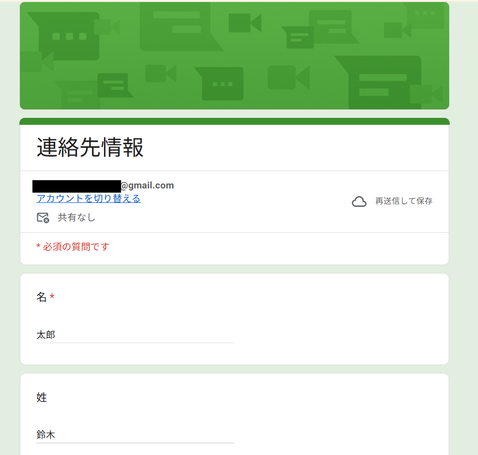 Googleフォームで下記のようなフォームを作成し、回答を行っておきましょう。