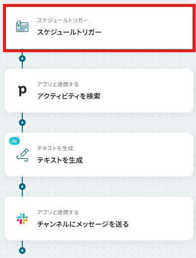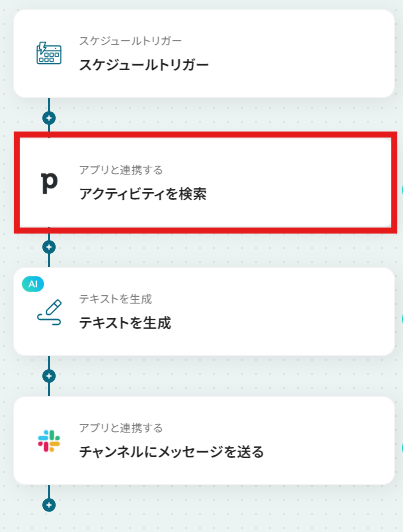 それではここから代表的な例として、毎朝Pipedriveで未完了アクティビティを検索し、その結果をSlackに自動で通知するフローを解説していきます!