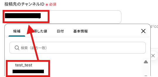 取得した値とは、トリガーやオペレーション設定時に、「テスト」を実行して取得した値のことを指します。