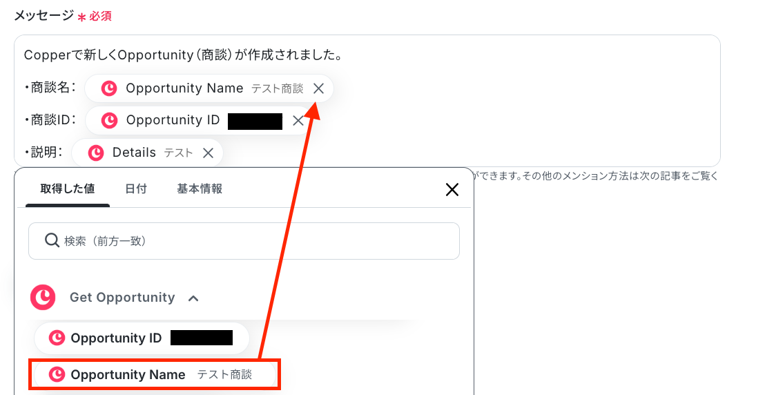 ステップ4:Copperで商談情報の詳細を取得する設定