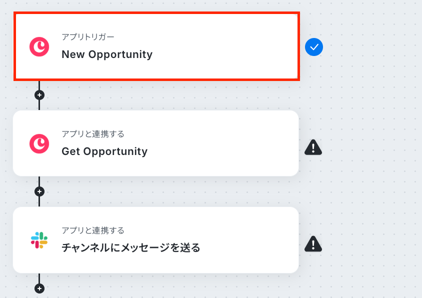 それではここから代表的な例として、Copperで新しい商談(Opportunity)が作成されたら、その詳細情報を取得してSlackに自動で通知するフローを解説していきます!