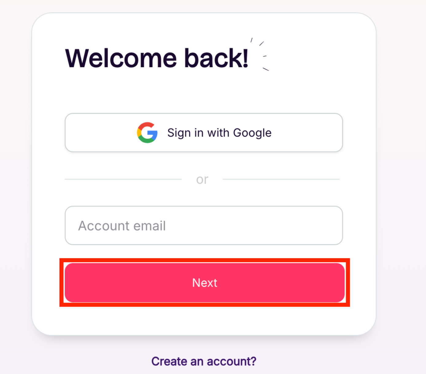 下記画面が表示されたら、Emailを入力して「Next」をクリックします。