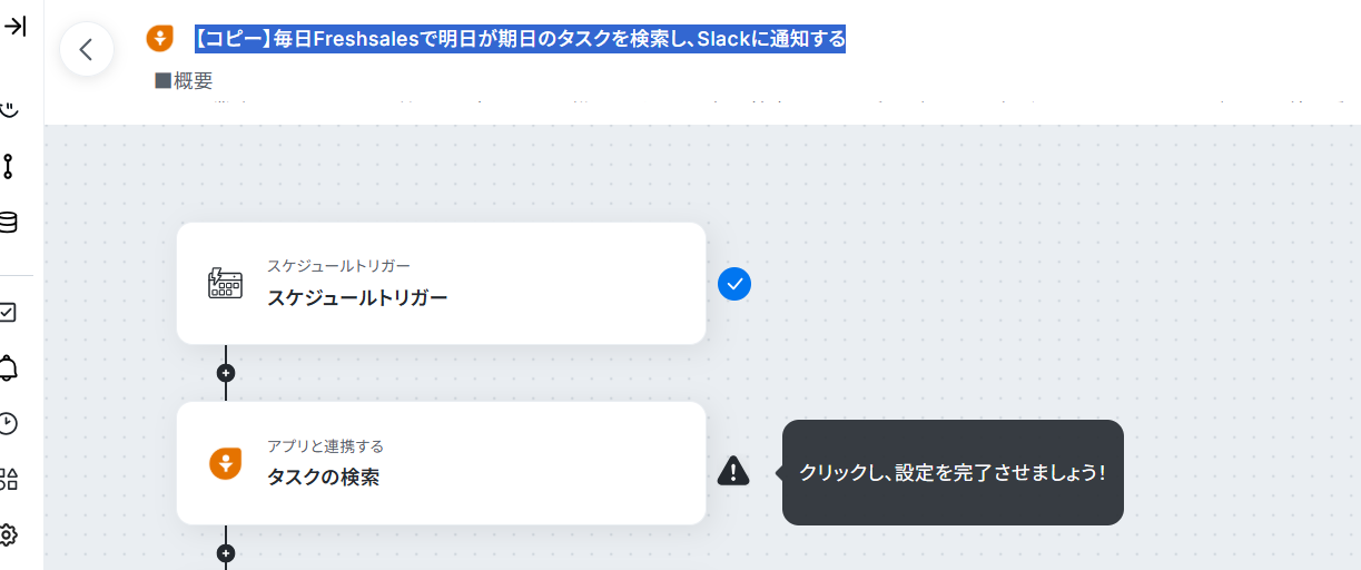 Freshsalesのタスクを検索し通知するフローを作ってみよう それではここから代表的な例として、毎日Freshsalesで明日が期日のタスクを検索し、Slackに通知する フローを解説していきます!