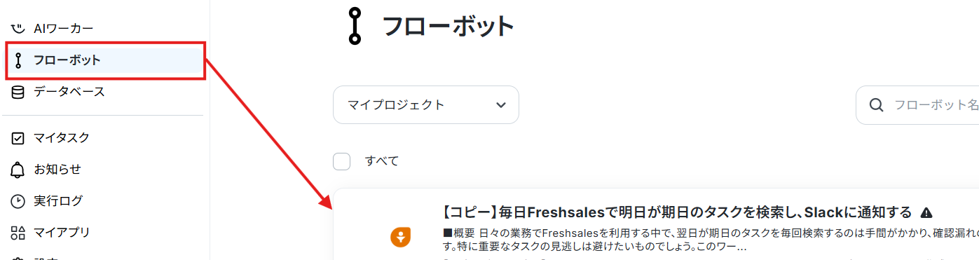 また、コピーしたテンプレートはフローボットに保存されているので、ここからも開くことができます。