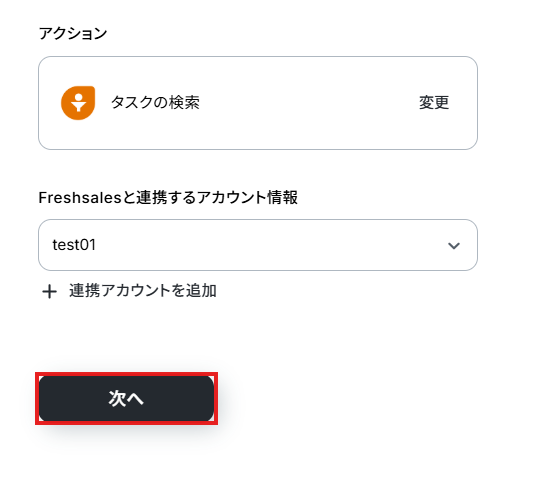 ステップ4:Freshsalesのタスクを検索する設定 まずはFreshsalesのタスクを検索する設定していきます。