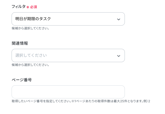 スケジュールのトリガー設定では、フローを起動したい曜日や時刻を任意で設定してください Freshsalesの「タスクの検索」オペレーションでは、期日が明日になっているタスクを検索するよう条件を設定しますが、必要に応じて担当者やステータスなどの条件を追加することも可能です Slackの「チャンネルにメッセージを送る」オペレーションでは、通知を届けたい任意のチャンネルIDを指定してください ■注意事項