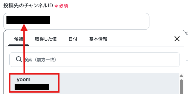 チャンネルIDはボックスの候補から選択します。
