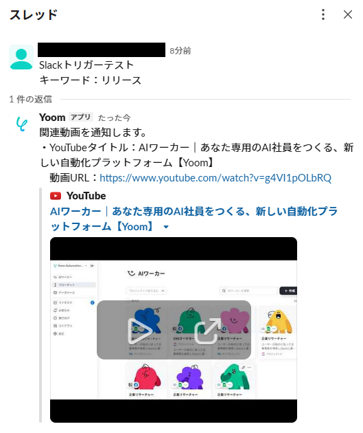 - Slackのメッセージから直接YouTubeの動画検索が自動で実行されるため、手作業での検索やURLのコピー&ペーストにかかる時間を短縮できます。