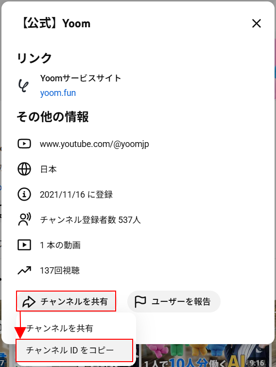 Yoomの画面に戻り、チャンネルIDを設定します。