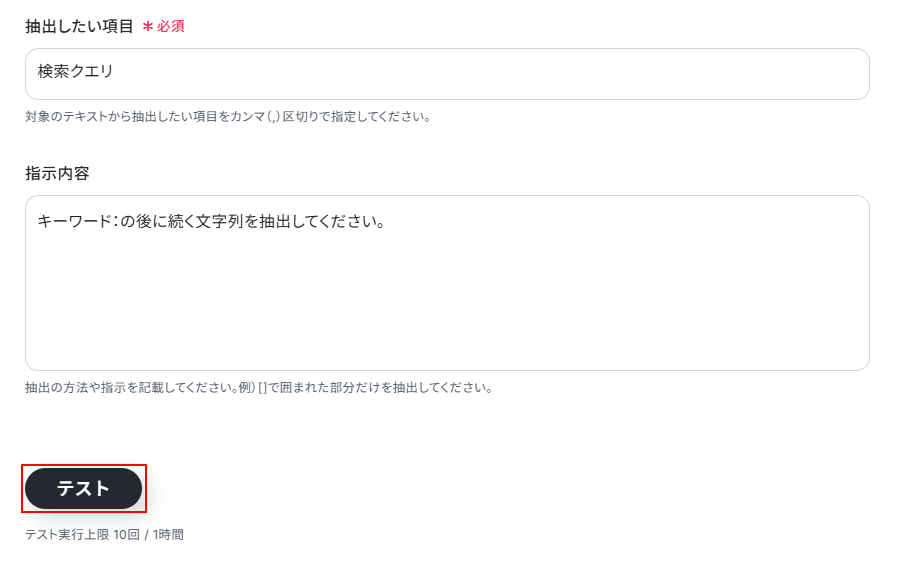 指示内容を記入しなくても抽出を行うことは可能ですが、より正確に抽出したい場合は記入してください。