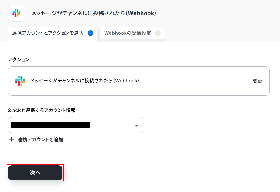 Webhookの設定を行います。