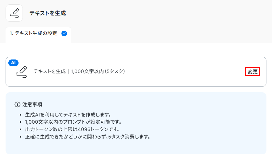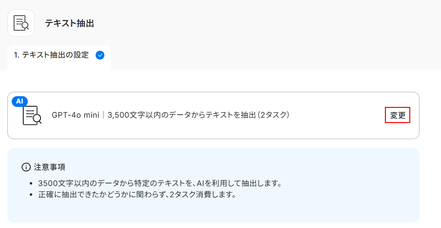 今回はデフォルトで設定されているGPT-4o mini 3,500文字を使用します。