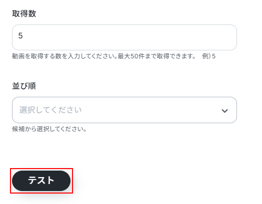 例えば、「YouTubeタイトルと動画IDがどちらも空白の場合は「関連動画は見つかりませんでした。」と表示してください。」などを追記することで、関連動画が見つからなかった場合も対応できます。