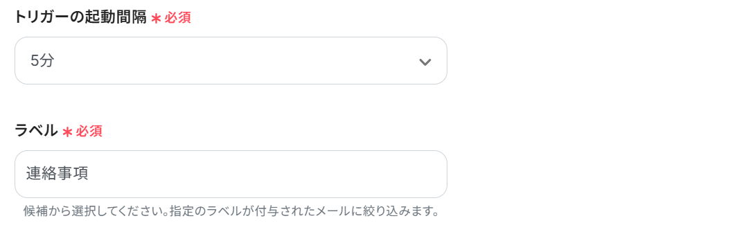ラベルを付ける項目で新規ラベルを作成し、下記のように設定しましょう。