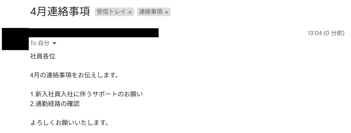 ここでGmailにラベルの条件に合致するテストメールを送信してみましょう。