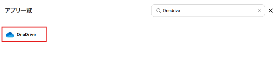 「新規接続」クリック後、アプリ一覧からOneDriveを検索します。