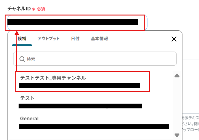 チャネルIDも同様に、候補から選択してください。