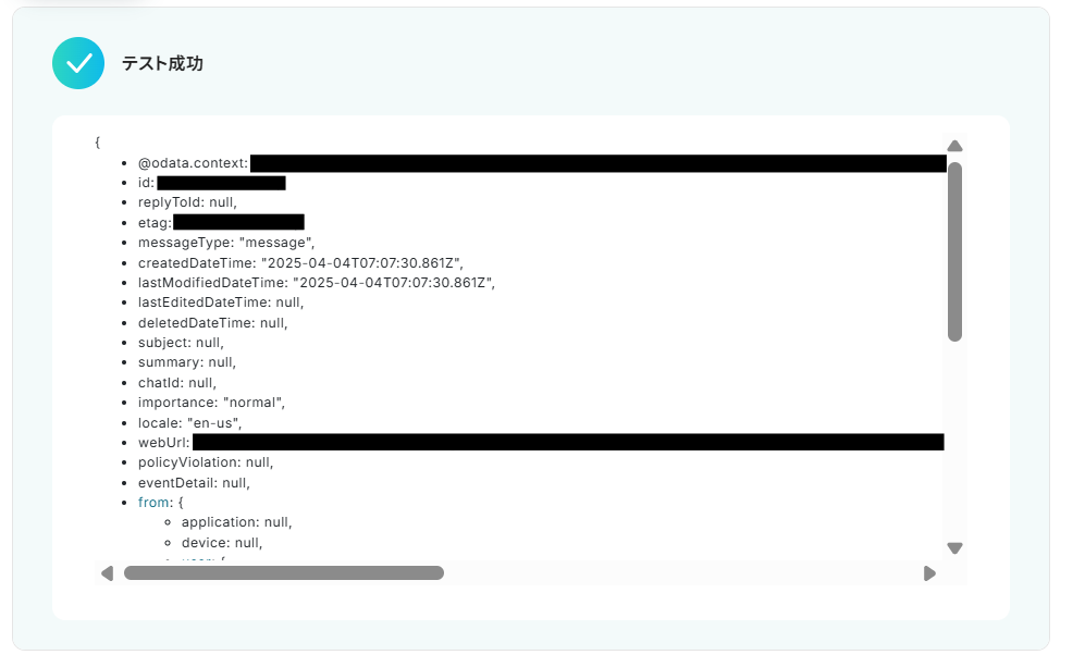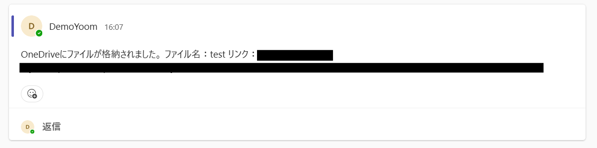 ここで取得したアウトプットを、Microsoft Teamsの通知設定時に活用することで、OneDriveのデータをMicrosoft Teamsに自動通知できるようになります!