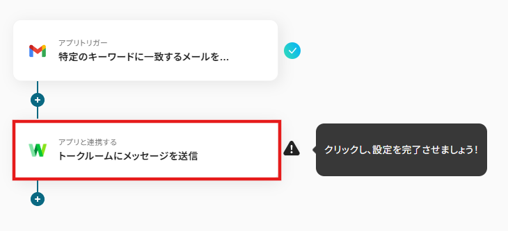 例えば、「Gamilでメールを受信しました」や「件名:」など、毎回同じテキストを使用する部分は、定型文として固定値で入力します。