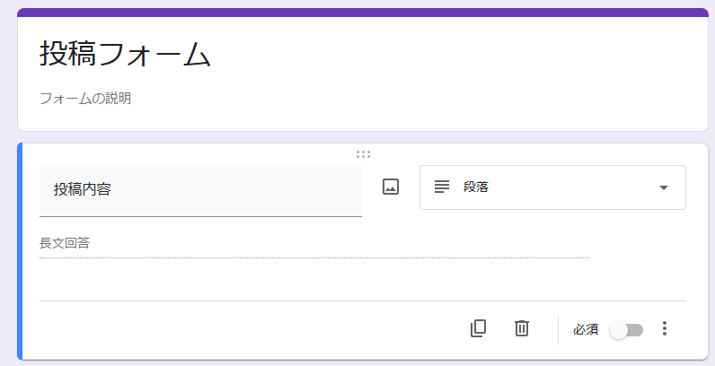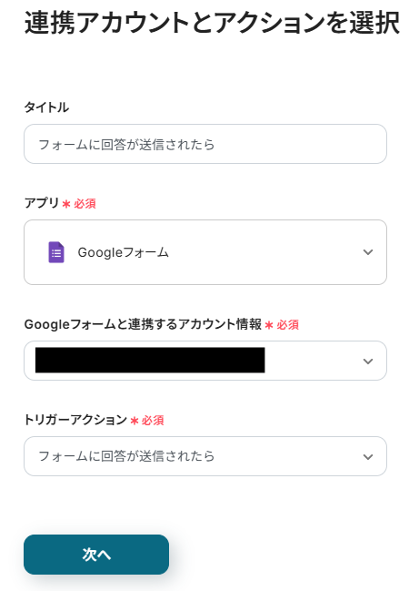 - 「Googleフォームと連携するアカウント情報」→アカウントに相違がないか確認
