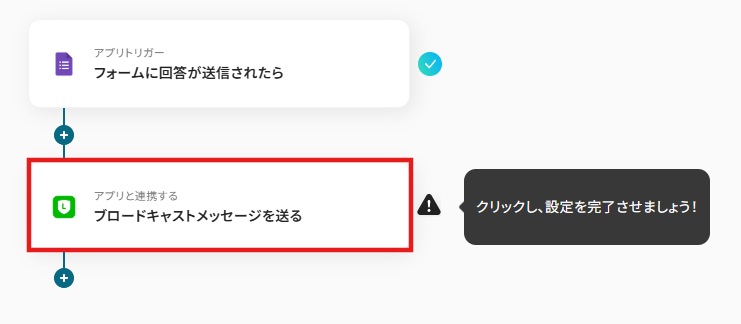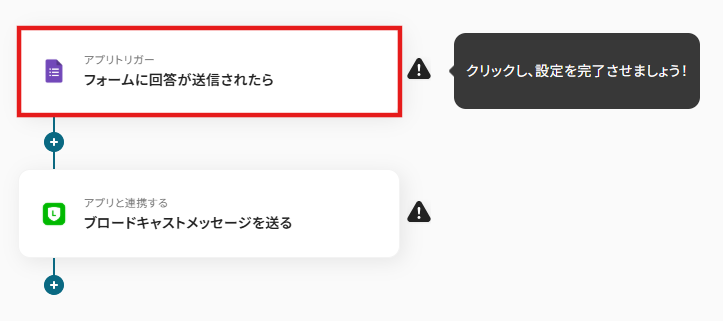 - Googleフォームのトリガー設定およびLINE公式アカウントのアクション設定